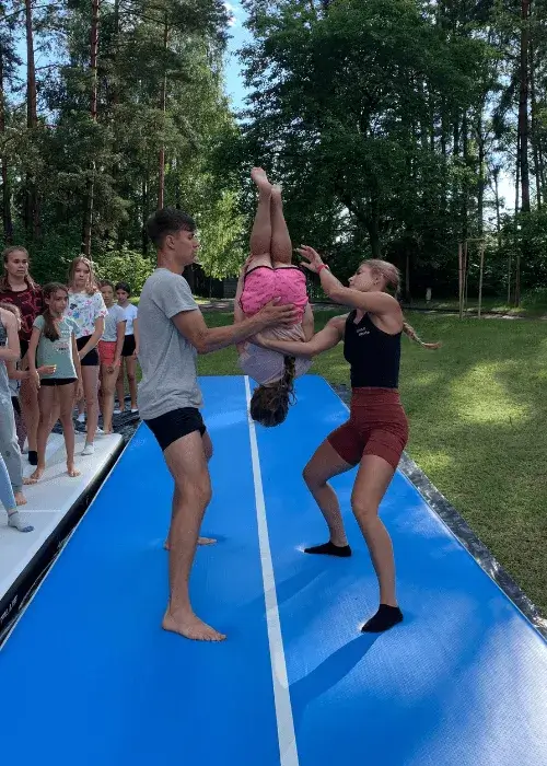 Nasze obozy prowadzone są przez doświadczonych instruktorów, którzy zapewniają wysoki poziom treningów akrobatycznych. Dzieci mają okazję doskonalić swoje umiejętności pod okiem ekspertów, ucząc się nowych technik i rozwijając swoje talenty w bezpiecznym i motywującym środowisku.